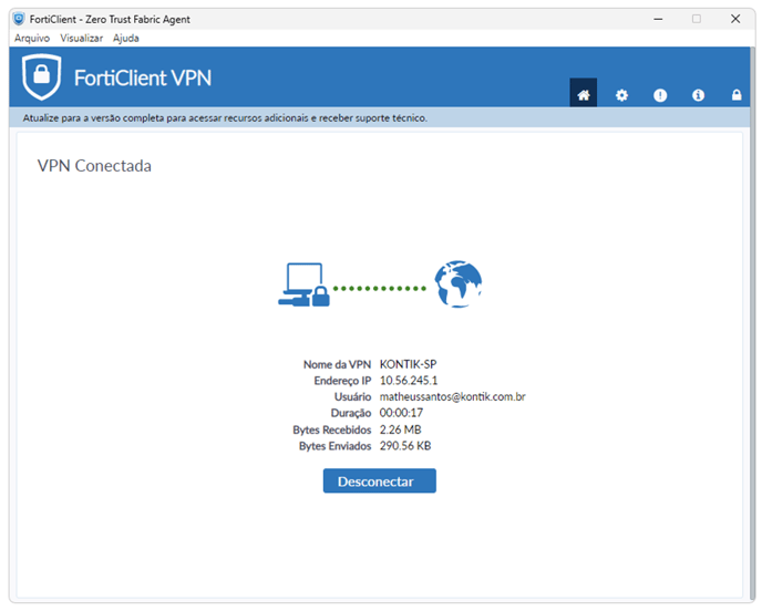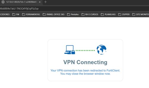 👉 Pronto! Sua conexão VPN conectada utilizando as credenciais do e-mail. ![]() OBSERVAÇÕES