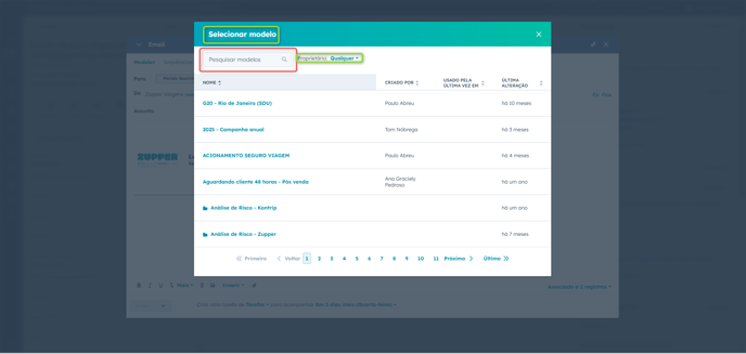 - Ao criar o e-mail para o cliente, a opção "Modelo" irá aparecer.