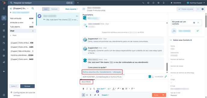 Processo para utilização de modelos e snippets no atendimento ao cliente zupper